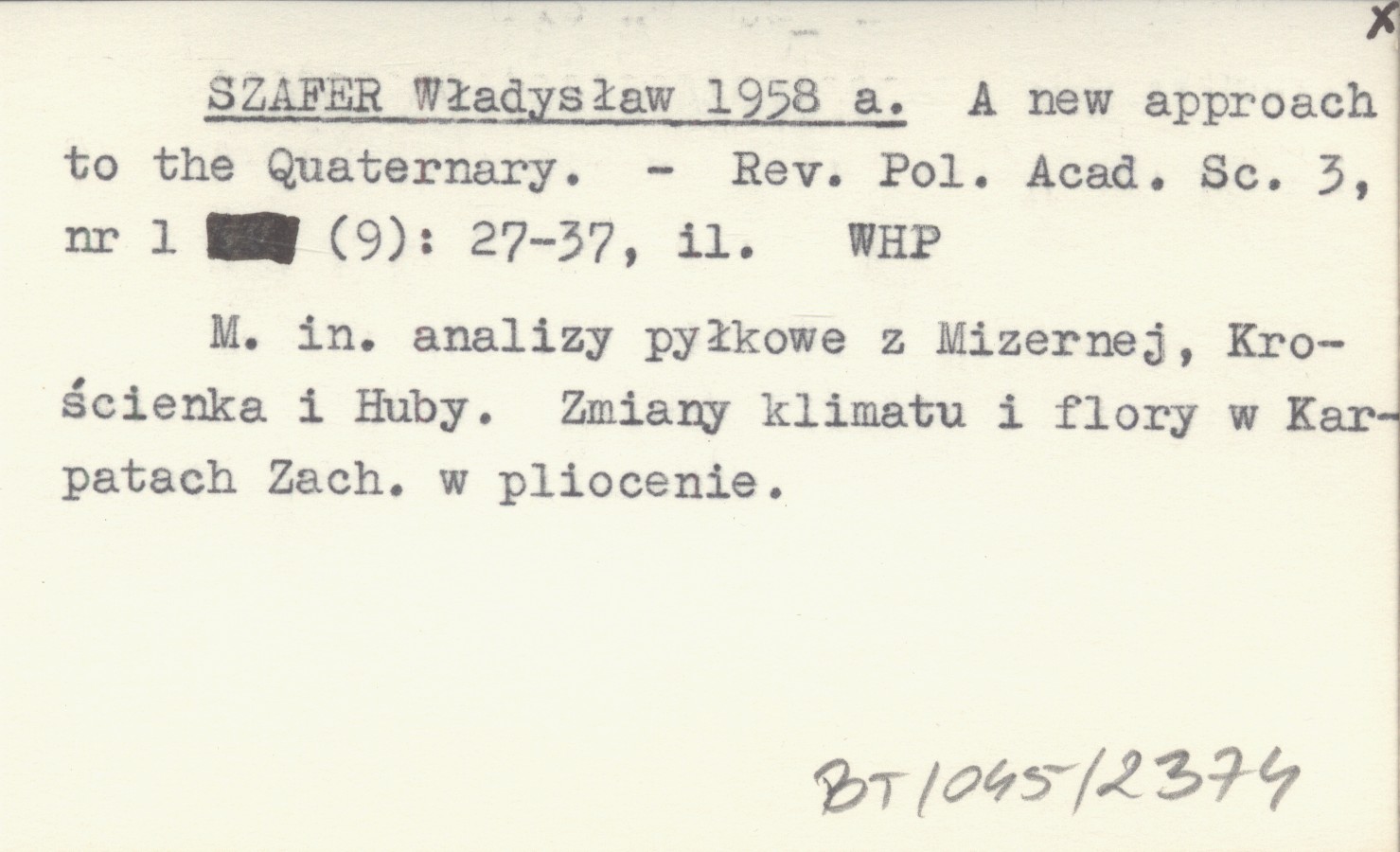 SZAFER Władysław 1958 a A new approach to the Quaternary.