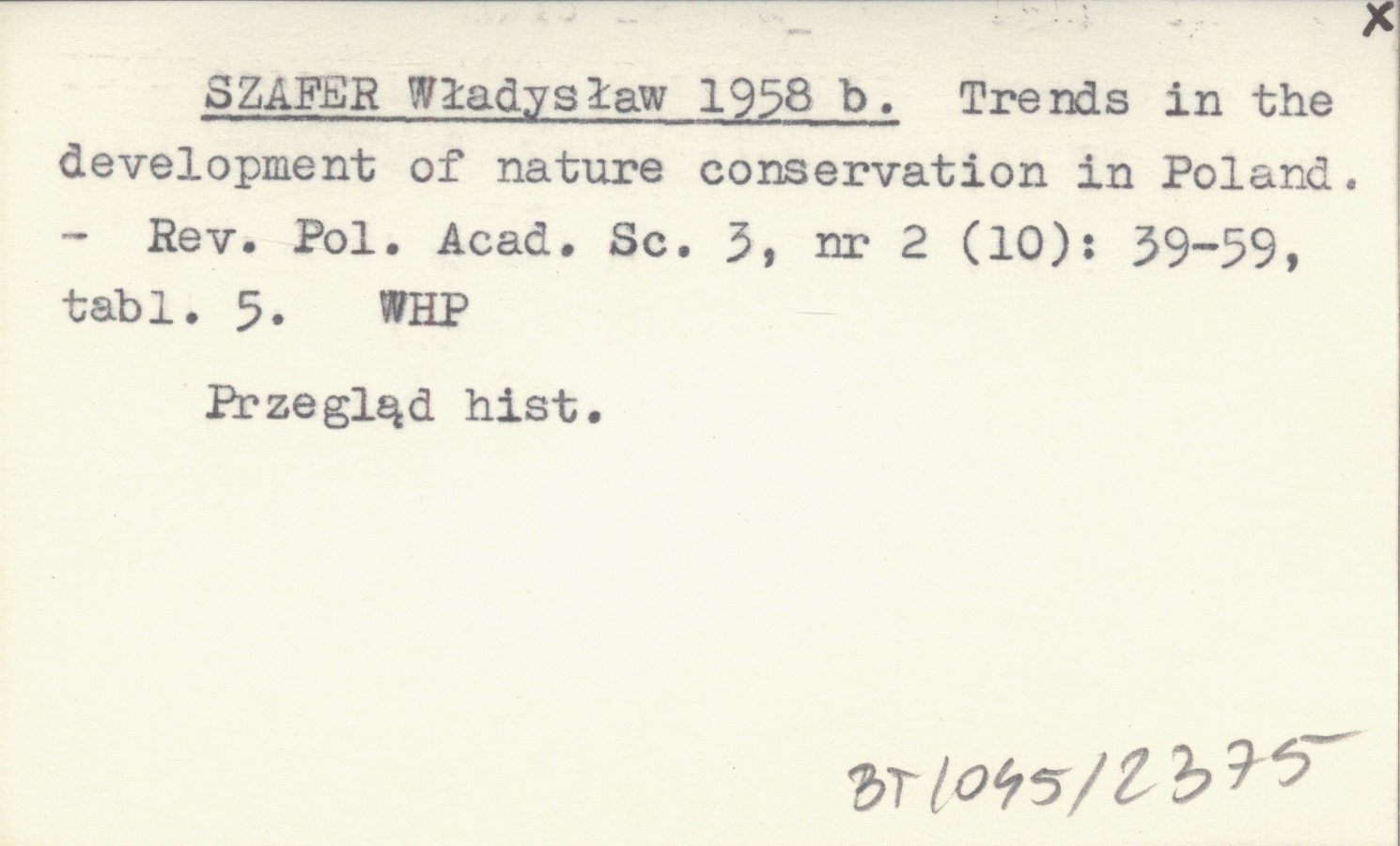 SZAFER Władysław 1958 b Trends in the development of nature conservation in Poland.