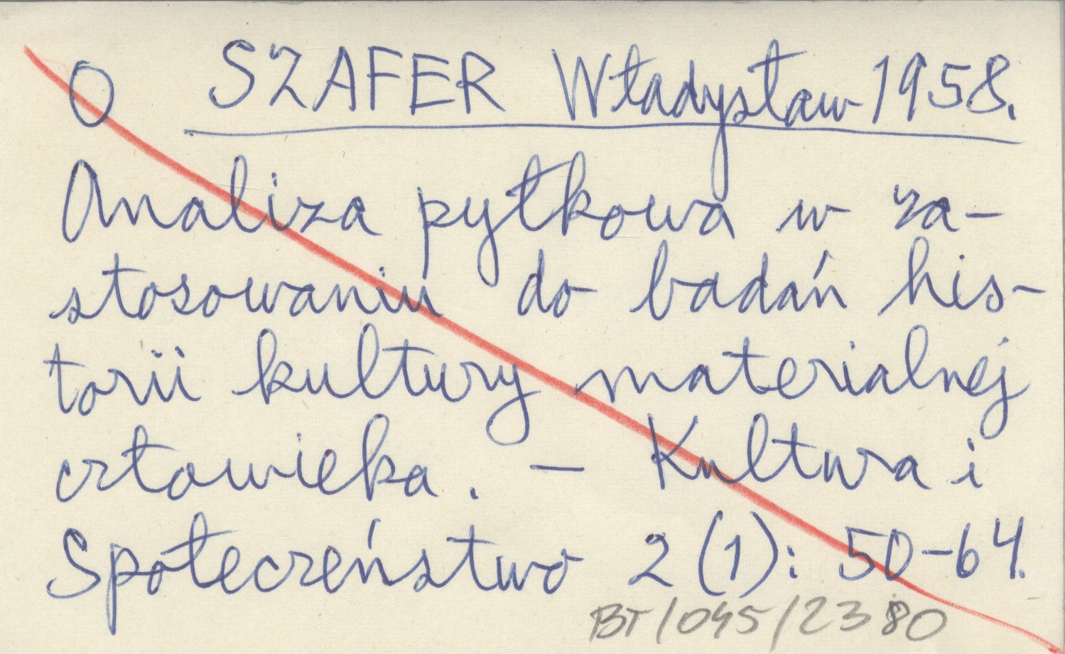 SZAFER Władysław 1958 Analiza pyłkowa w zastosowaniu do badań historii kultury materialnej człowieka.