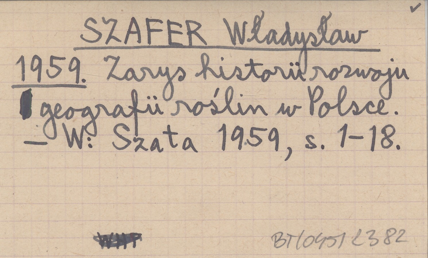 SZAFER Władysław 1959 Zarys historii rozwoju geografii roślin w Polsce.