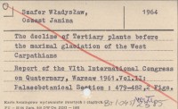 SZAFER Władysław OSZAST, Janina. ; 1964 The decline of Tertiary plants before the maximal glaciation of the West Carpathians.