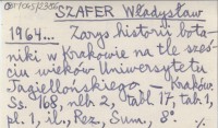 SZAFER Władysław 1964... Zarys historii botaniki w Krakowie na tle sześciu wieków Uniwersytetu Jagiellońskiego.
