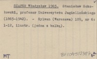 SZAFER Władysław 1965 Stanisław Sokołowski, profesor Uniwersytetu Jagiellońskiego (1865-1942).