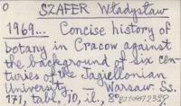 SZAFER Władysław 1969... Concise history of botany in Cracow against the background of six centuries of the Jagiellonian University.