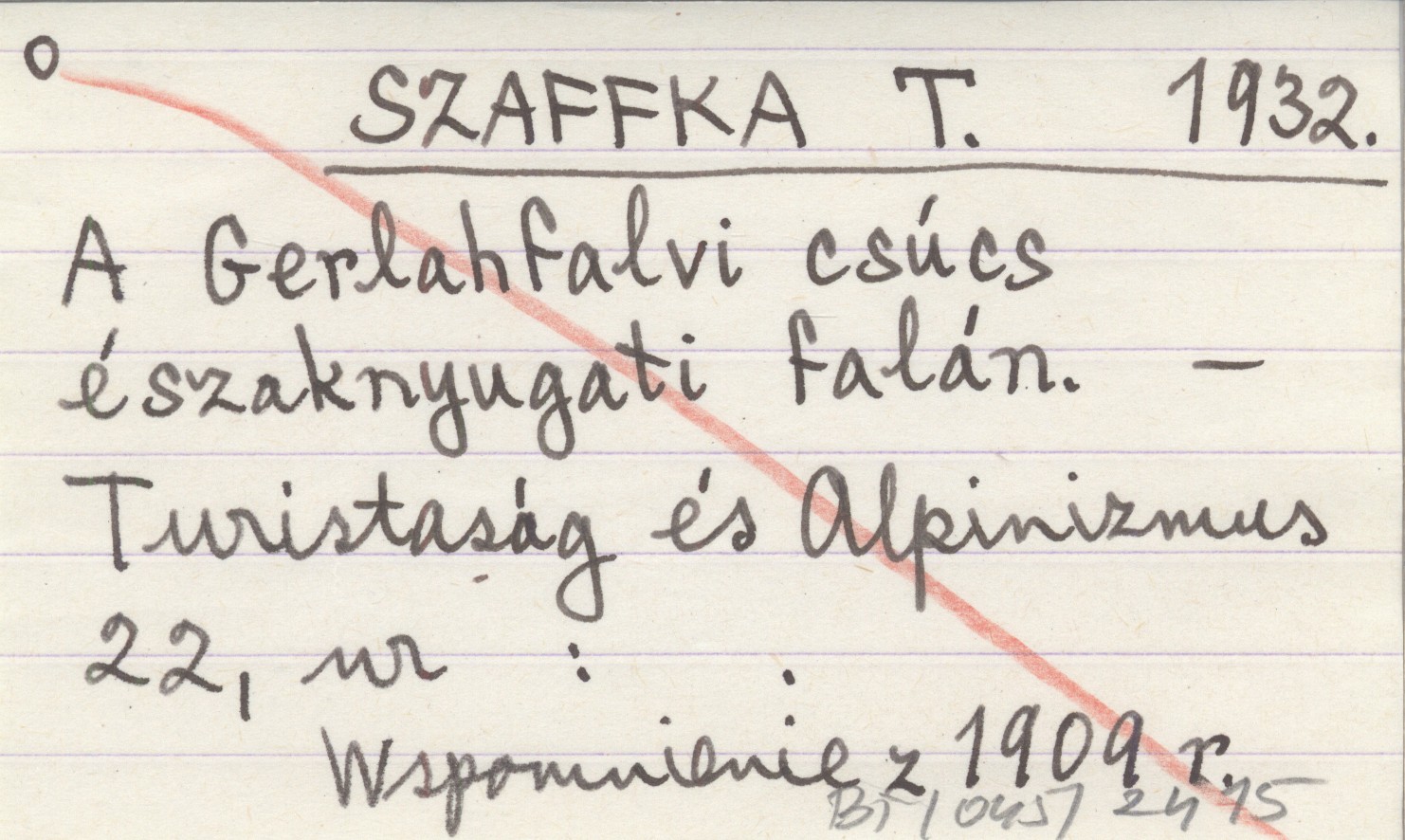 SZAFFKA T. 1932 A Gerlahfalvi csúcs é szaknyugati falán.