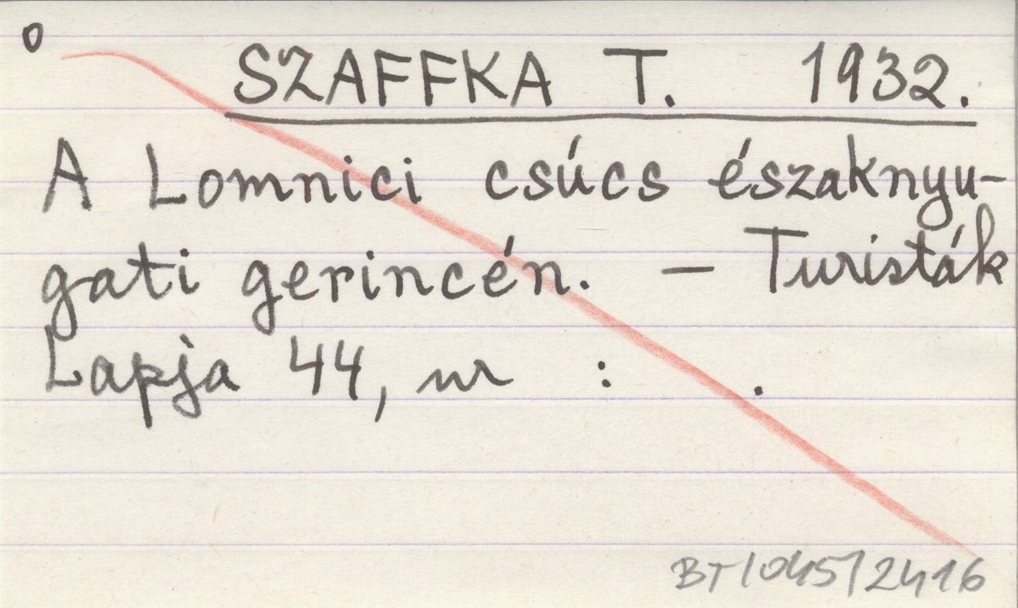 SZAFFKA T. 1932 A Lomnici csúcs északnyugati gerincén.