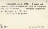 SZAFLARSKI Józef 1933 Z badań nad jeziorami Tatr Wysokich.