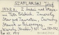 SZAFLARSKI Józef 1932 a Z badań nad stawami Tatr Polskich. Zmarzły Staw pod Zawratem, Czerwony Stawek w Pańszczycy.