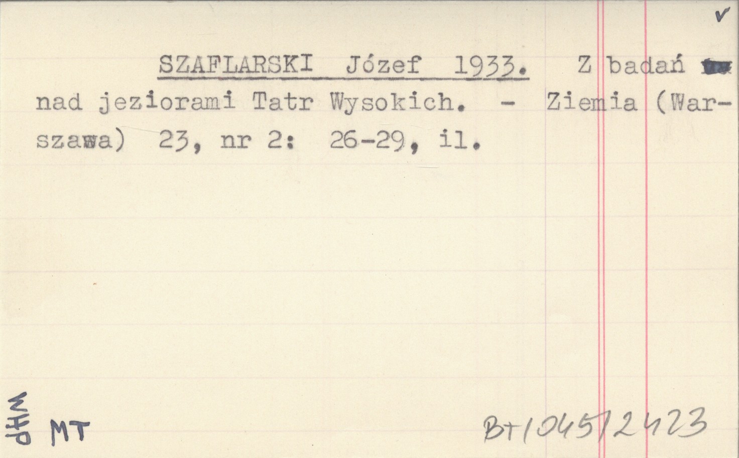 SZAFLARSKI Józef 1933 Z badań nad jeziorami Tatr Wysokich.