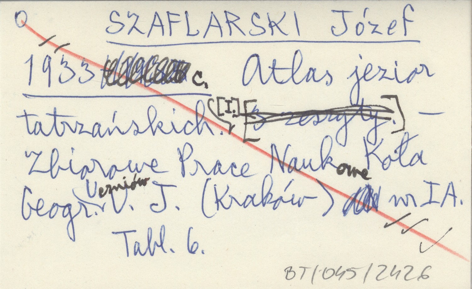 SZAFLARSKI Józef 1933 c Atlas jezior tatrzańskich. [I.]