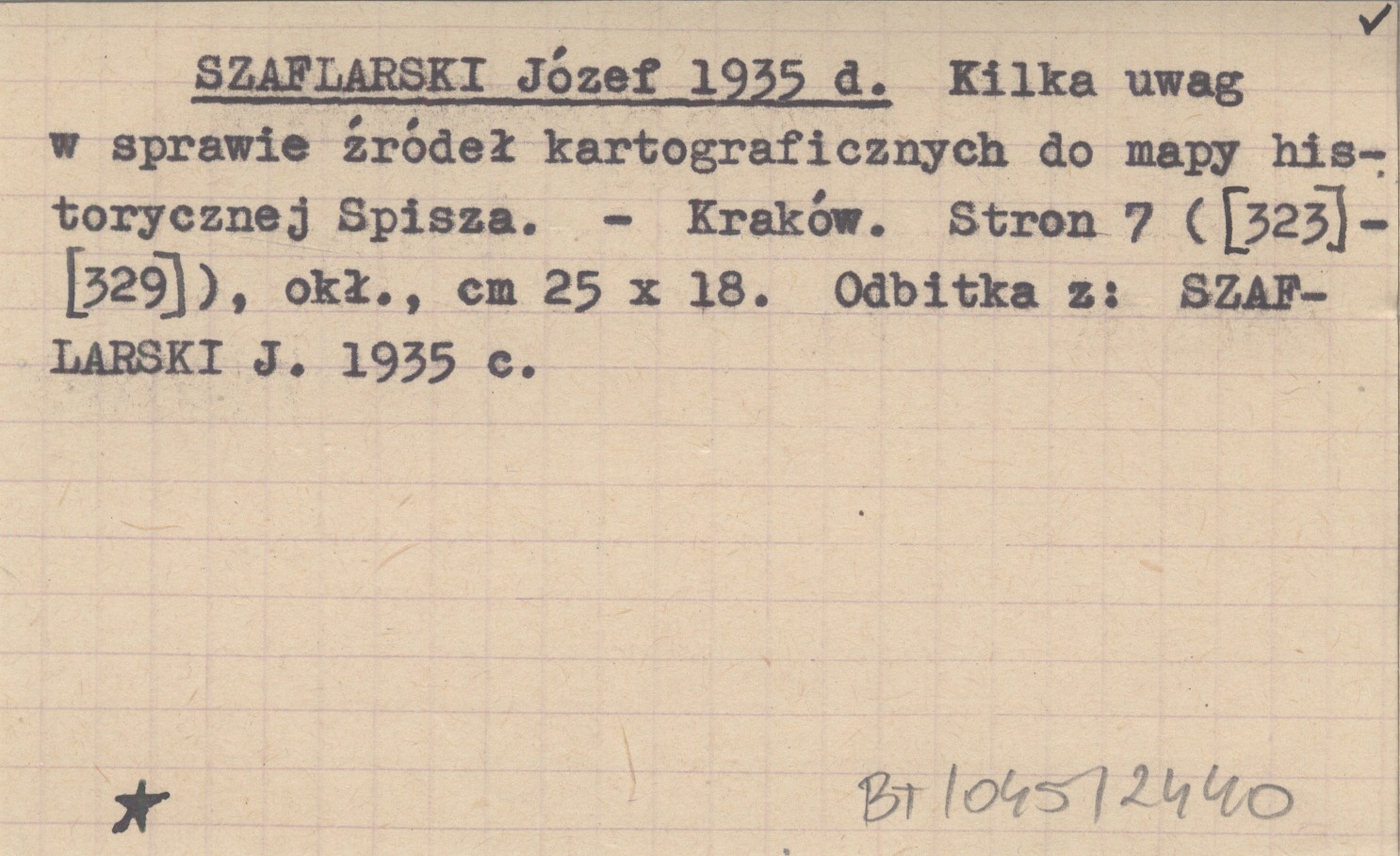 Kraków , 7 s. ([323]-[329]), okł., 25x18 cm. Odbitka z: SZAFLARSKI J. 1935 c.
