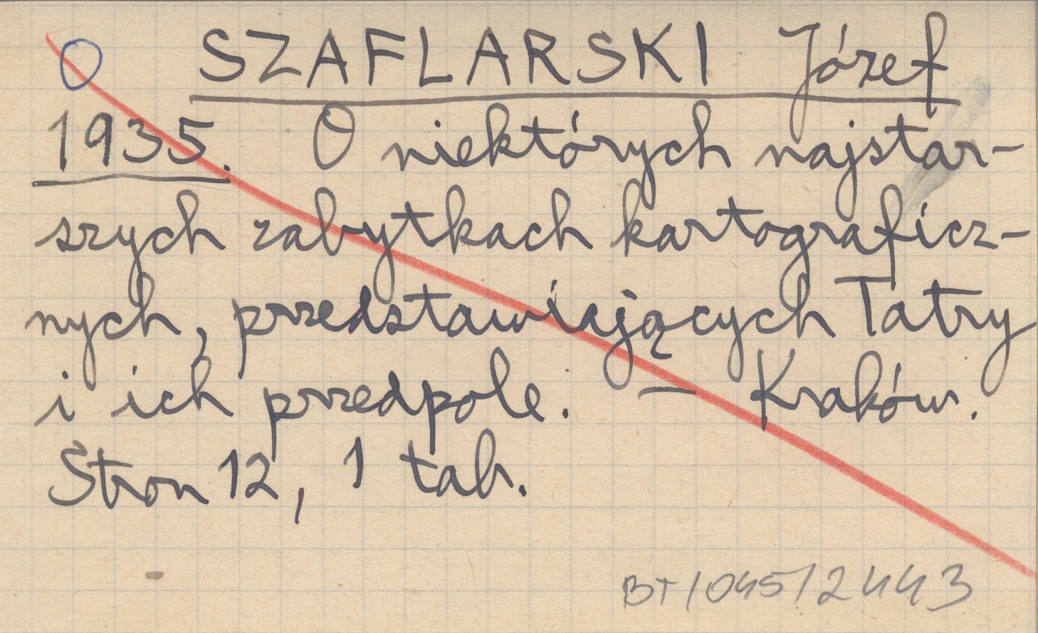 SZAFLARSKI Józef 1935 O niektórych najstarszych zabytkach kartograficznych, przedstawiających Tatry i ich przedpole.