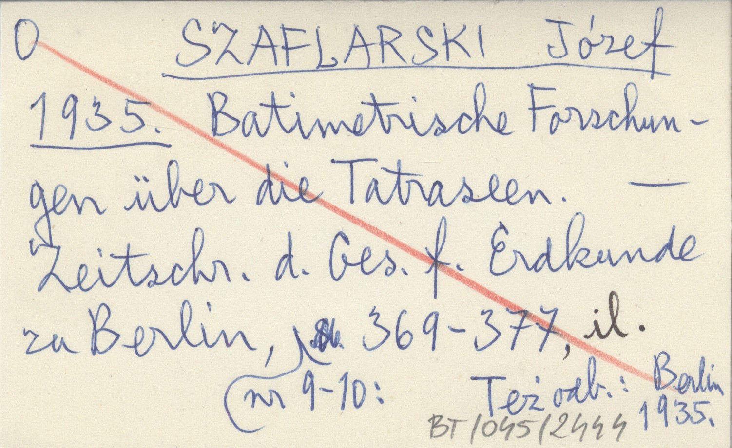 SZAFLARSKI Józef 1935 Batimetrische Forschungen über die Tatraseen.