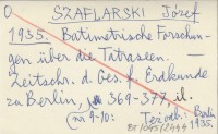 SZAFLARSKI Józef 1935 Batimetrische Forschungen über die Tatraseen.