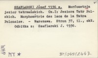 SZAFLARSKI Józef 1936 a Morfometrja jezior tatrzańskich. Cz. I: Jeziora Tatr Polskich. Morphométrie des lacs de la Tatra Polonaise.