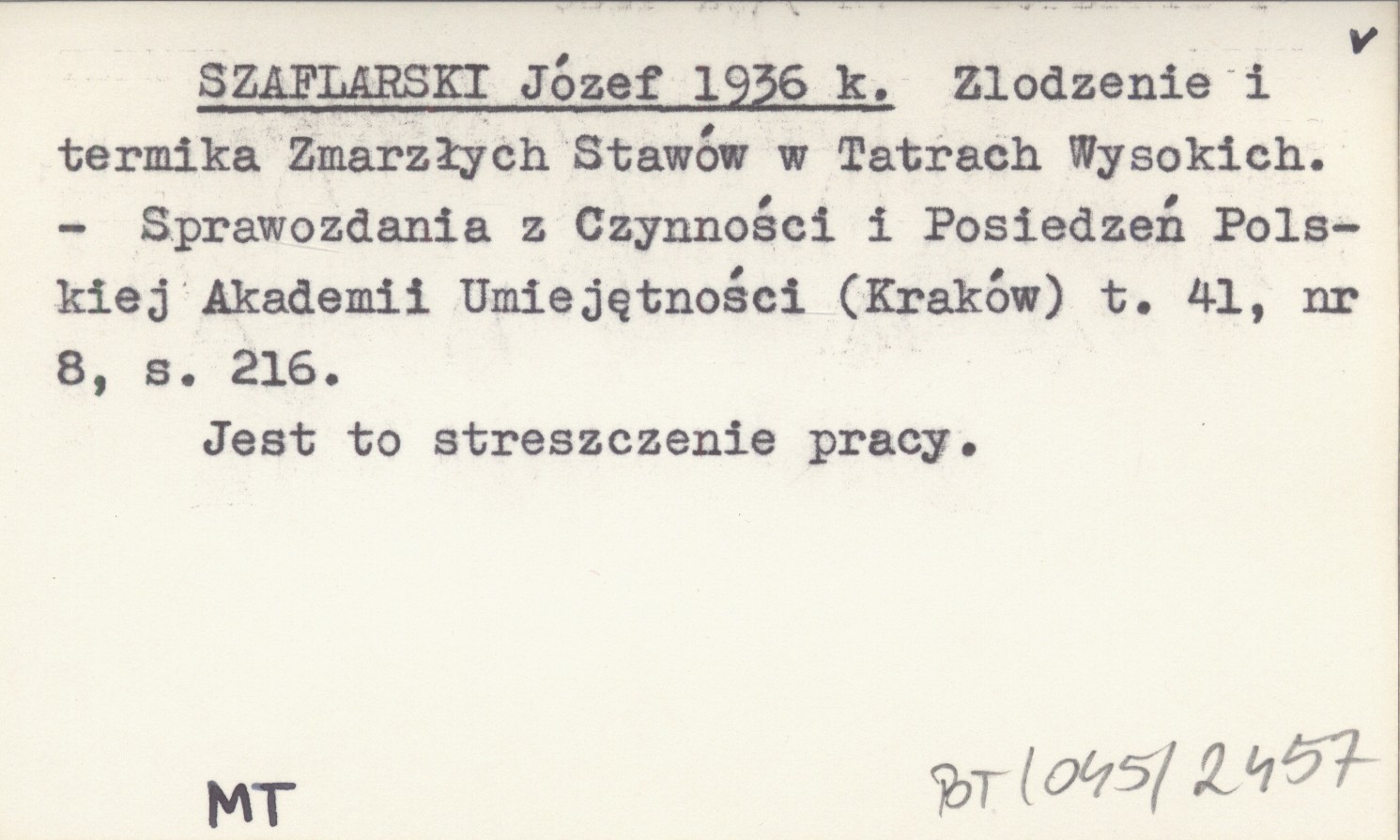 SZAFLARSKI Józef 1936 k Zlodzenia i termika Zmarzłych Stawów w Tatrach Wysokich.