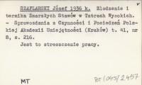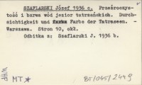 SZAFLARSKI Józef 1936 j Z badań nad termiką, przezroczystością i barwą wód jezior pd.-zachodniej części Wysokich Tatr.