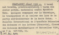 SZAFLARSKI Józef 1936 e Z badań nad termiką, przeźroczystością i barwą wód jezior połudn. zachodniej części Wysokich Tatr. Quelques remarques sur la thermique, la transparence et la couleur des lacs de la partie sud-occidentale de la Haute Tatra.