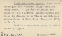 SZAFLARSKI Józef 1936 h Conditions thermiques des "Zmarzłe Stawy" dans les Hauts Tatra.