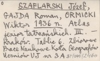 SZAFLARSKI Józef GAJDA, Roman. ; ORMICKI, Wiktor. ; 1936 n Atlas jezior tatrzańskich. III.