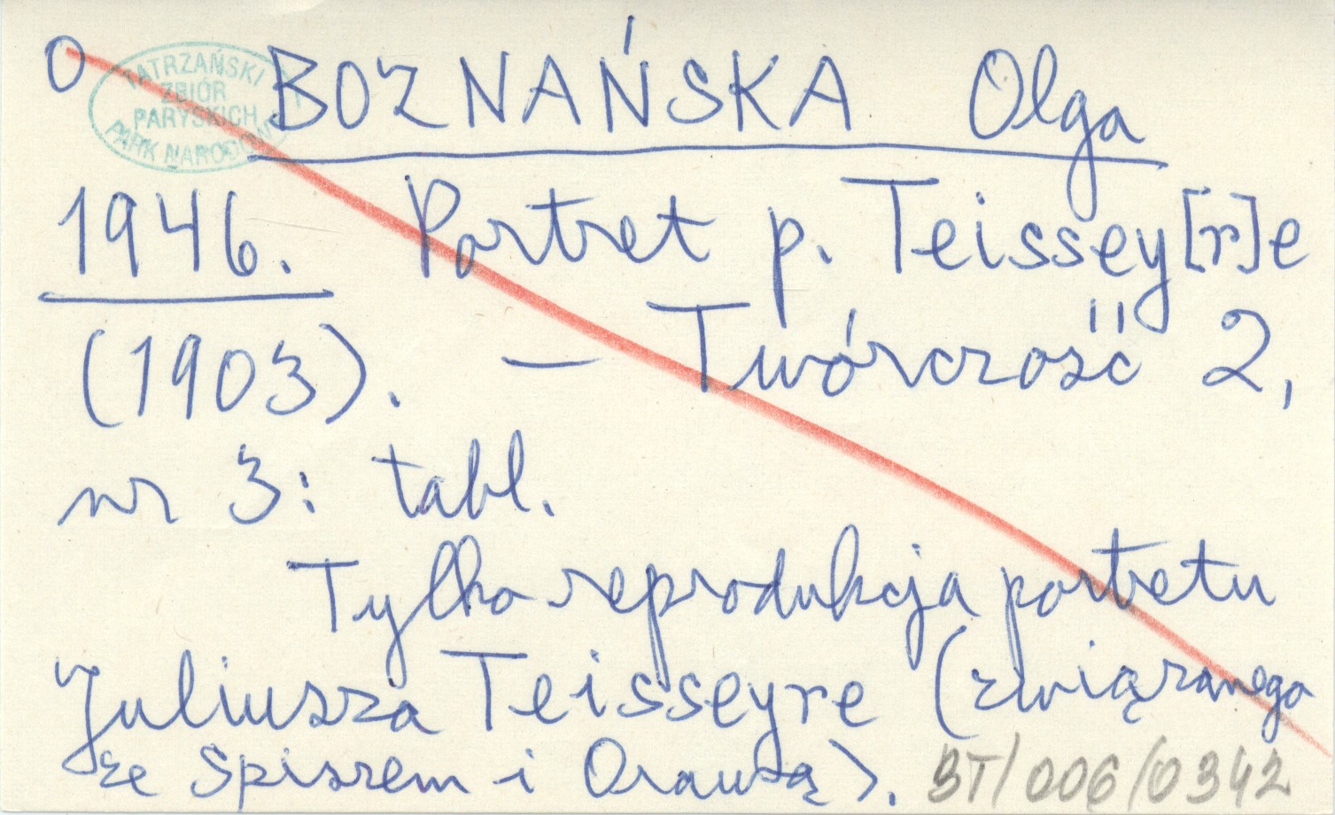BOZNAŃSKA Olga 1946 Portret p. Teissey[r]e (1903).