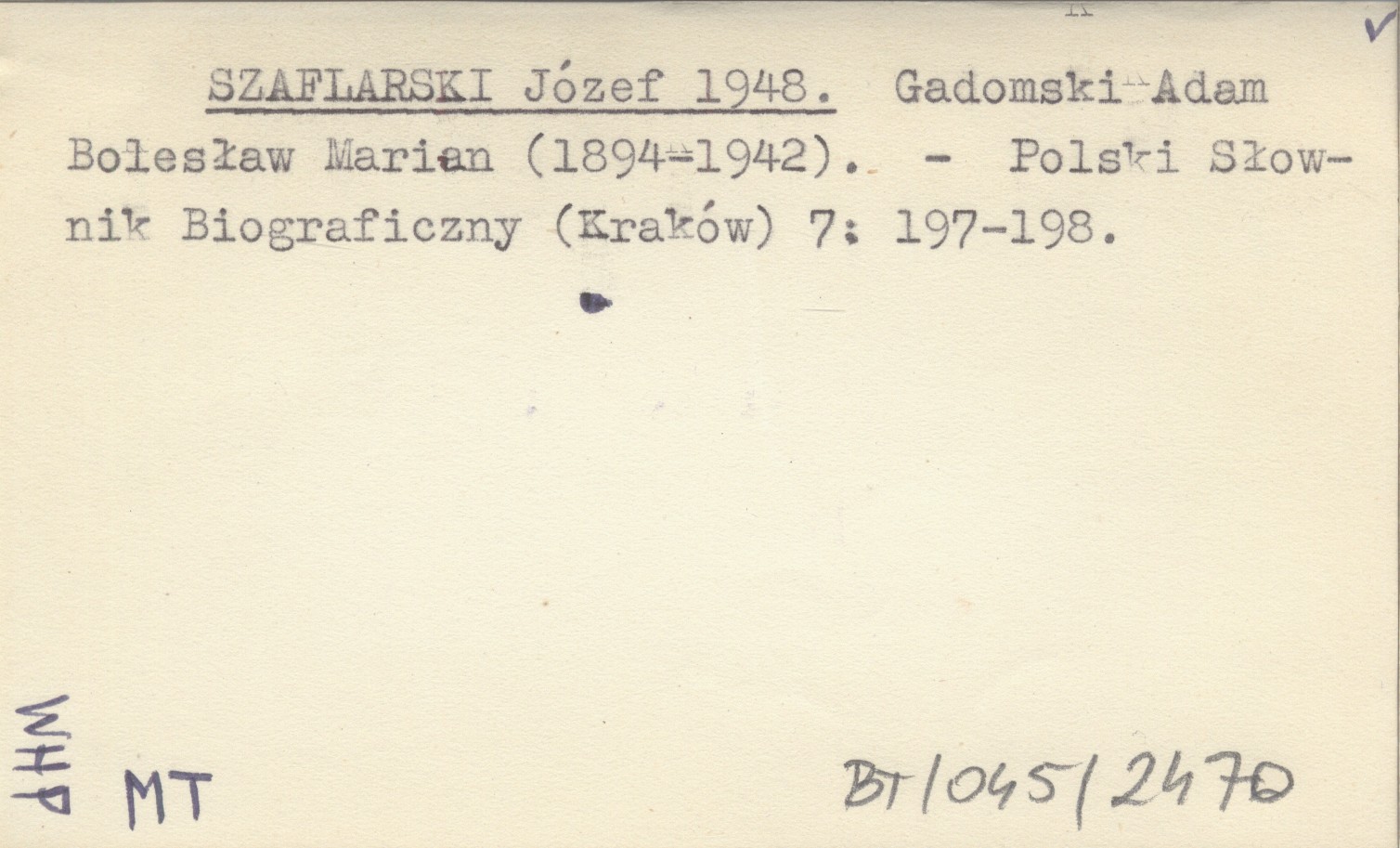 SZAFLARSKI Józef 1948 Gadomski Adam Bolesław Marian (1894-1942).