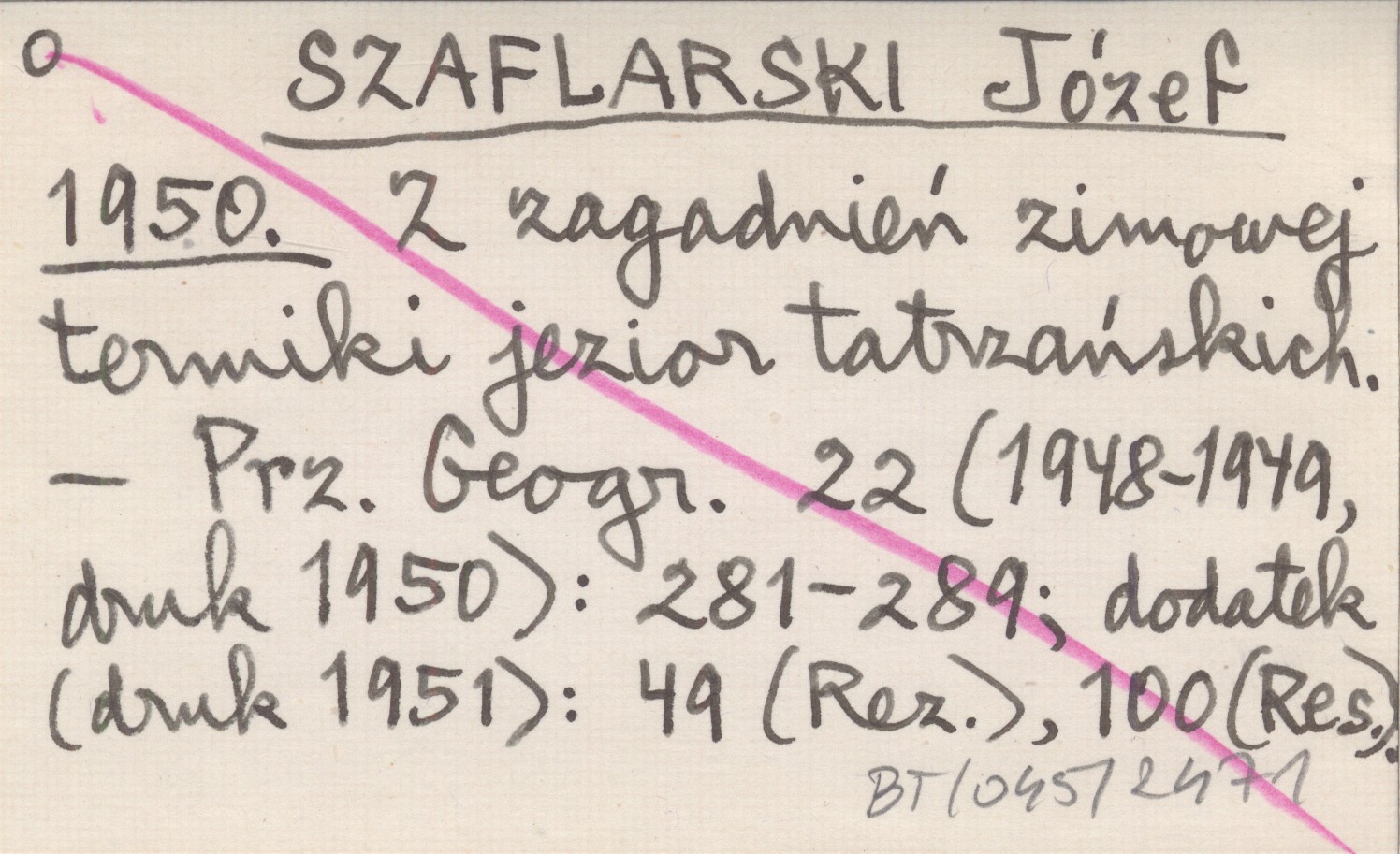 Przegląd Geograficzny, 22 (1948-1949, druk 1950): 281-289 ; dod. (druk 1951): 49 (Rez.), 100 (Res.).