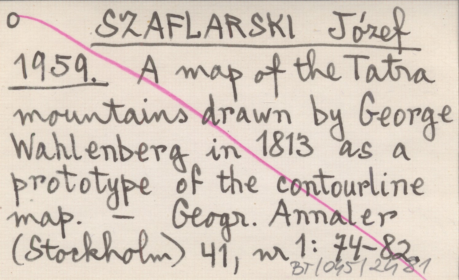 SZAFLARSKI Józef 1959 A map of the Tatra mountains drawn by George Wahlenberg in 1813 as a prototype of the contourline map.