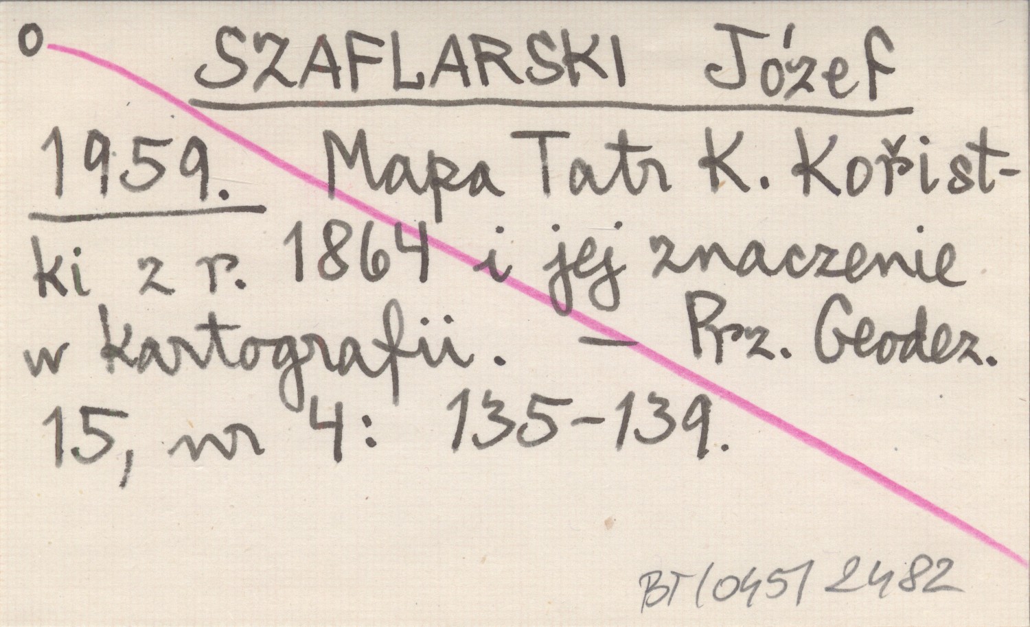 SZAFLARSKI Józef 1959 Mapa Tatr K. Kořistki z r. 1864 i jej znaczenie w kartografii.
