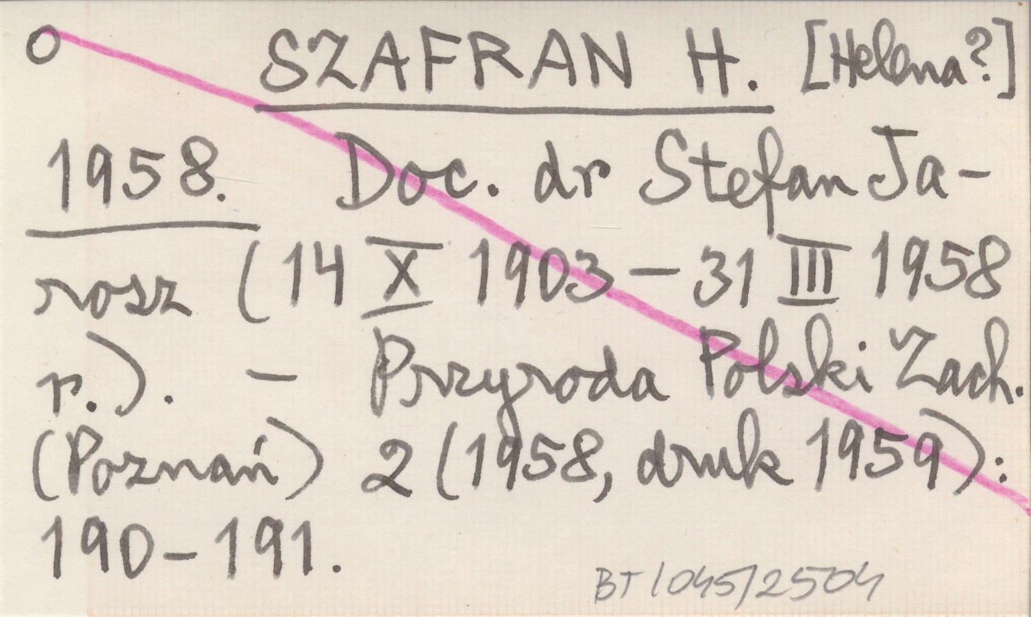 SZAFRAN H. [Helena?] 1958 Doc. dr Stefan Jarosz (14 X 1903 - 31 III 1958 r.).