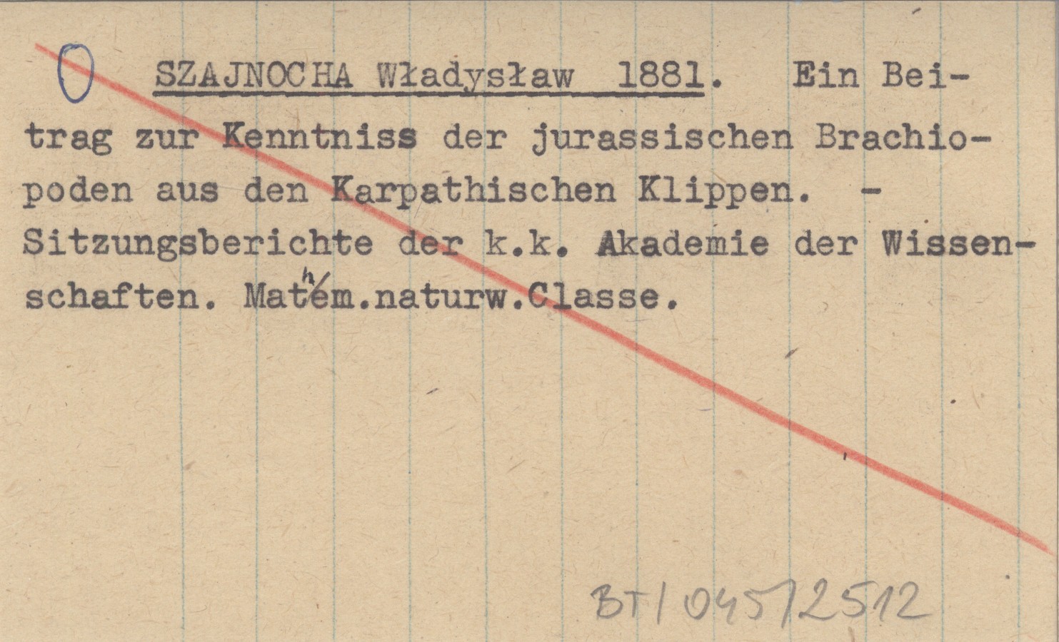 SZAJNOCHA Władysław 1881 Ein Beitrag zur Kenntniss der jurassischen Brachiopoden aus den Karpathischen Klippen.