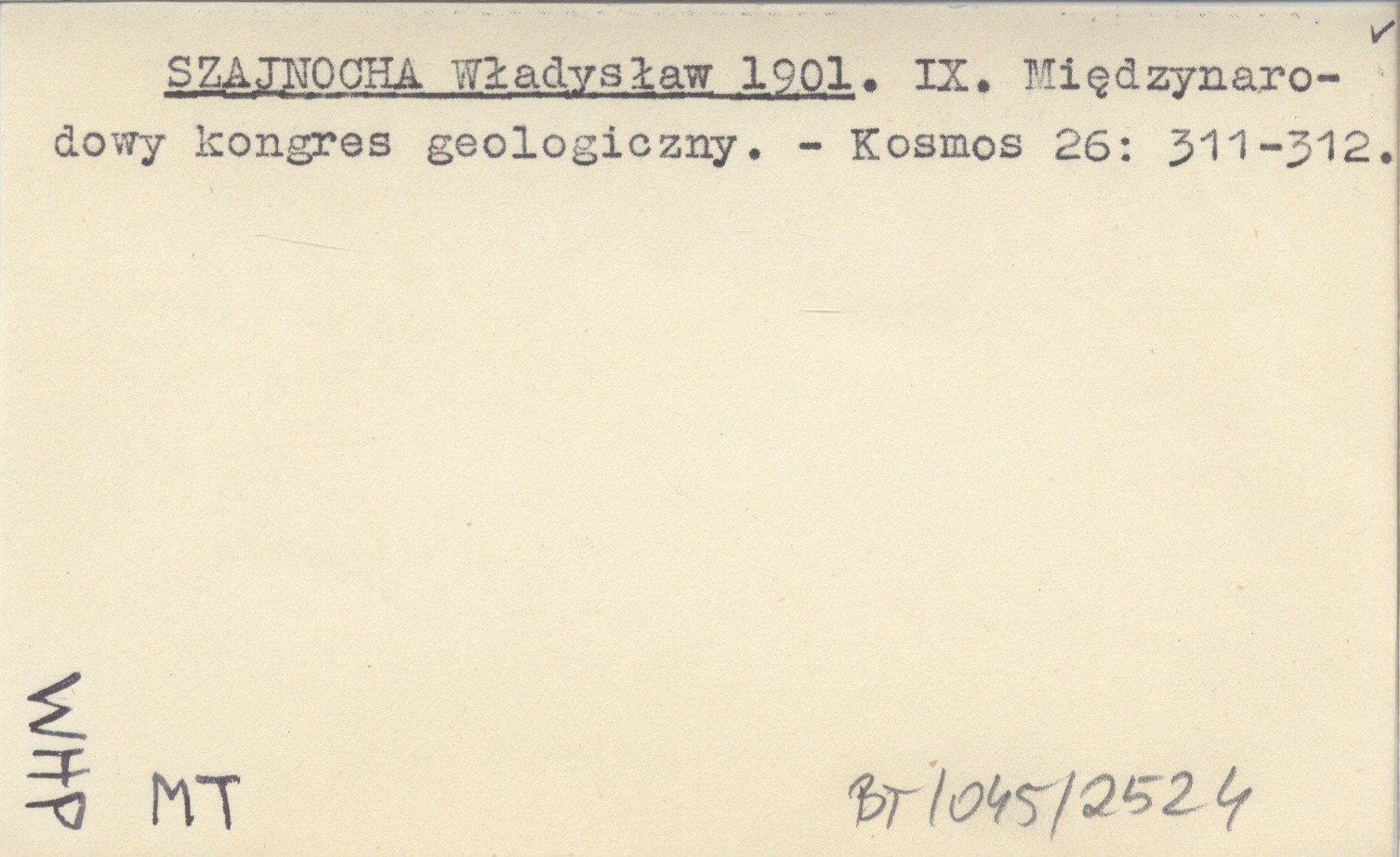 SZAJNOCHA Władysław 1901 IX. Międzynarodowy kongres geologiczny.