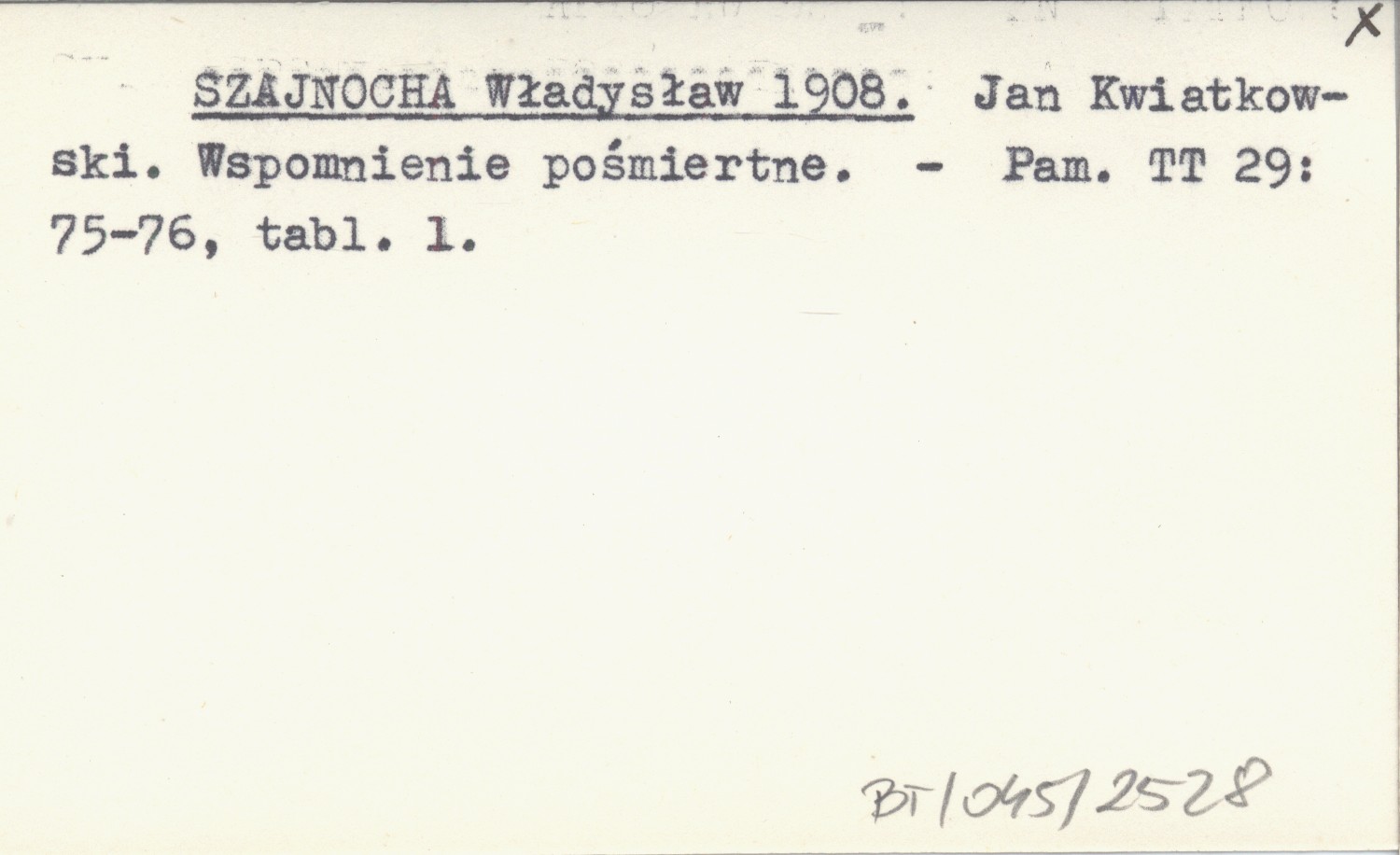 SZAJNOCHA Władysław 1908 Jan Kwiatkowski. Wspomnienie pośmiertne.