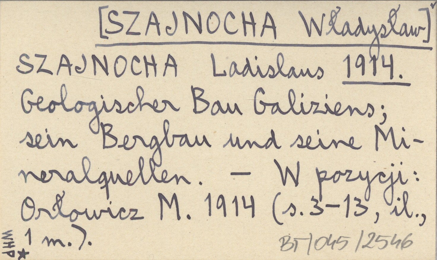 SZAJNOCHA Ladislaus [SZAJNOCHA Władysław] 1914 Geologischer Bau Galiziens ; sein Bergbau und seine Mineralquellen.