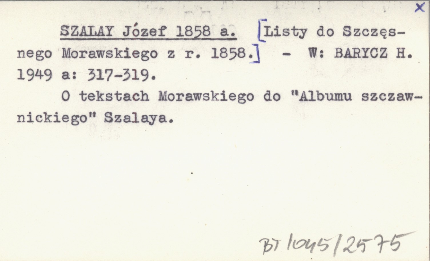 SZALAY Józef 1858 a [Listy do Szczęsnego Morawskiego z r. 1858.]
