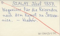 SZALAY Józef 1857 Wegweiser für die Reisenden nach dem Kurort zu Szczawnica.
