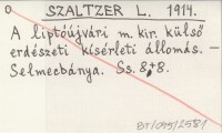 SZALTZER L. 1914 A liptóújvári m. kir. külső erdészeti kísérleti állomás.