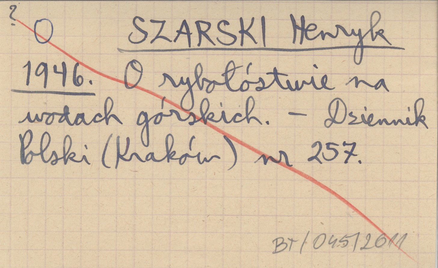 SZARSKI Henryk 1946 O rybołóstwie na wodach górskich.