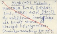 SZARVADY Kálmán MAUTNER, Dezső. ; GABÁNYI, Jenő. ; HERDI, Antal. ; [1923?] Az utódállamok fennhatósága alá került városok és községek helységnévtára. Gemeinderevzeichnis der unter Obermacht der Successionsstaaten gelangten Städten und Gemeinden.