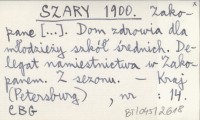 SZARY 1900 Zakopane [...]. Dom zdrowia dla młodzieży szkół średnich. Delegat namiestnictwa w Zakopanem. Z sezonu.