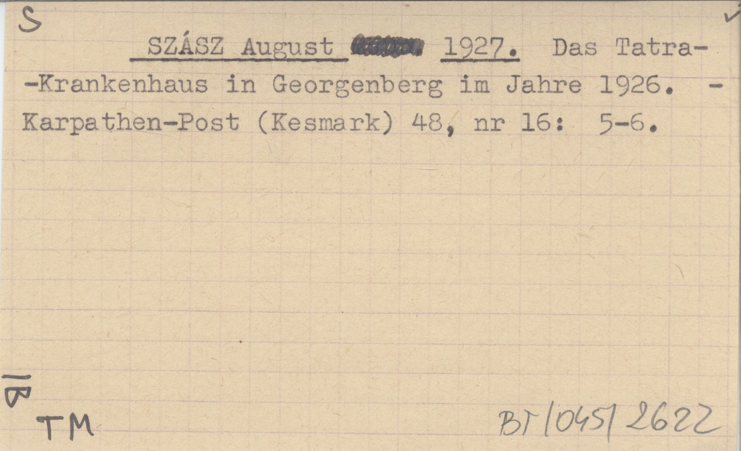 SZÁSZ August 1927 Das Tatra-Krankenhaus in Georgenberg im Jahre 1926.