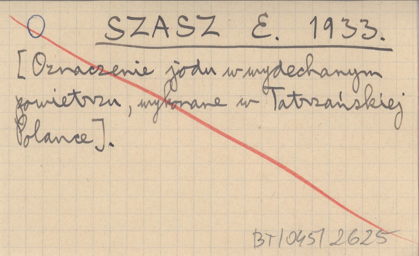 SZASZ E. 1933 [Oznaczenie jodu w wydechanym powietrzu, wykonane w Tatrzańskiej Polance.]