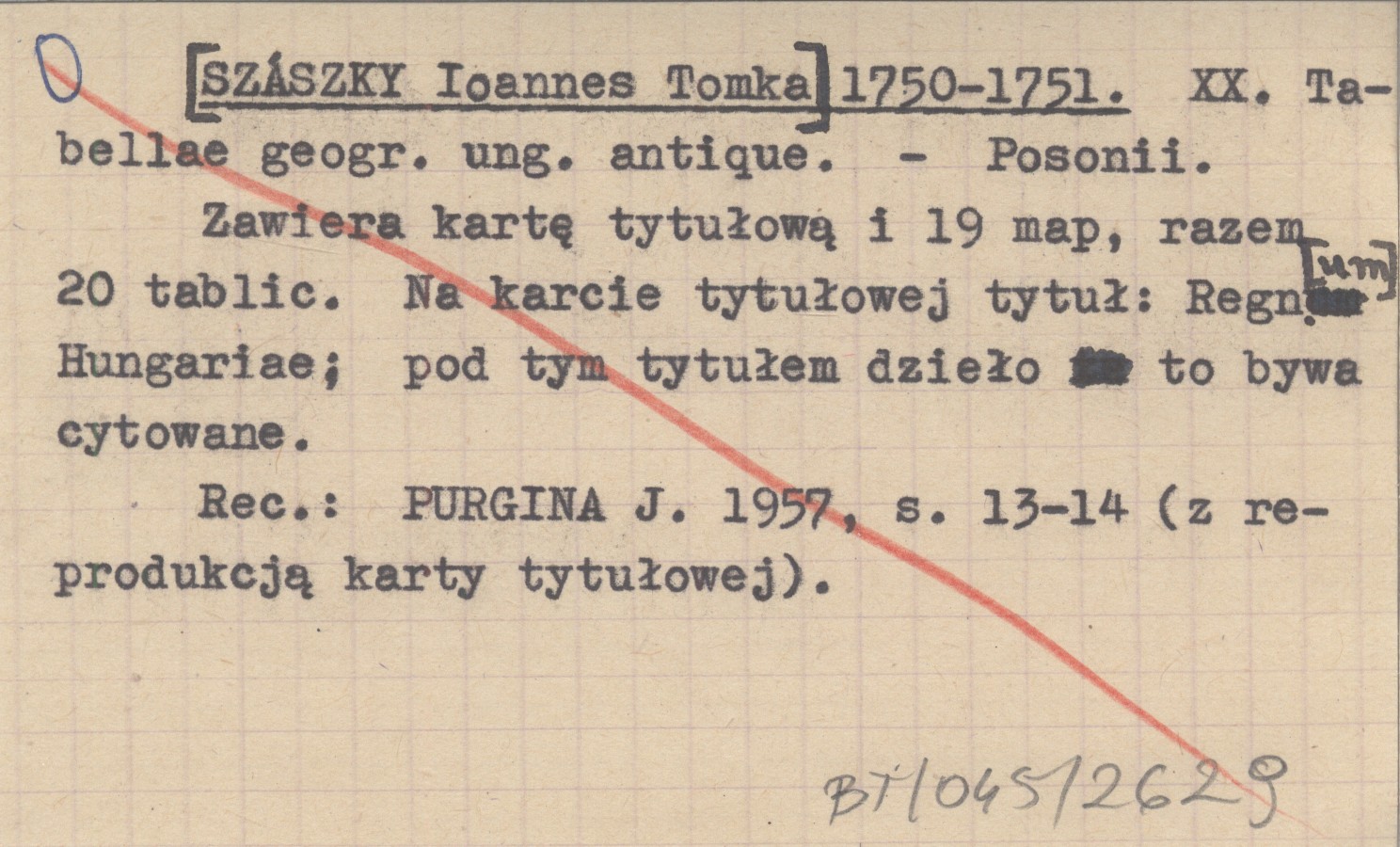 Posonii , Zawiera kartę tytułową i 19 map, razem 20 tablic. Na karcie tytułowej tytuł: Regn[um] Hungariae ; pod tym tytułem dzieło to bywa cytowane. REC: PURGINA J. 1957: 13-14 (z reprodukcją karty tytułowej).