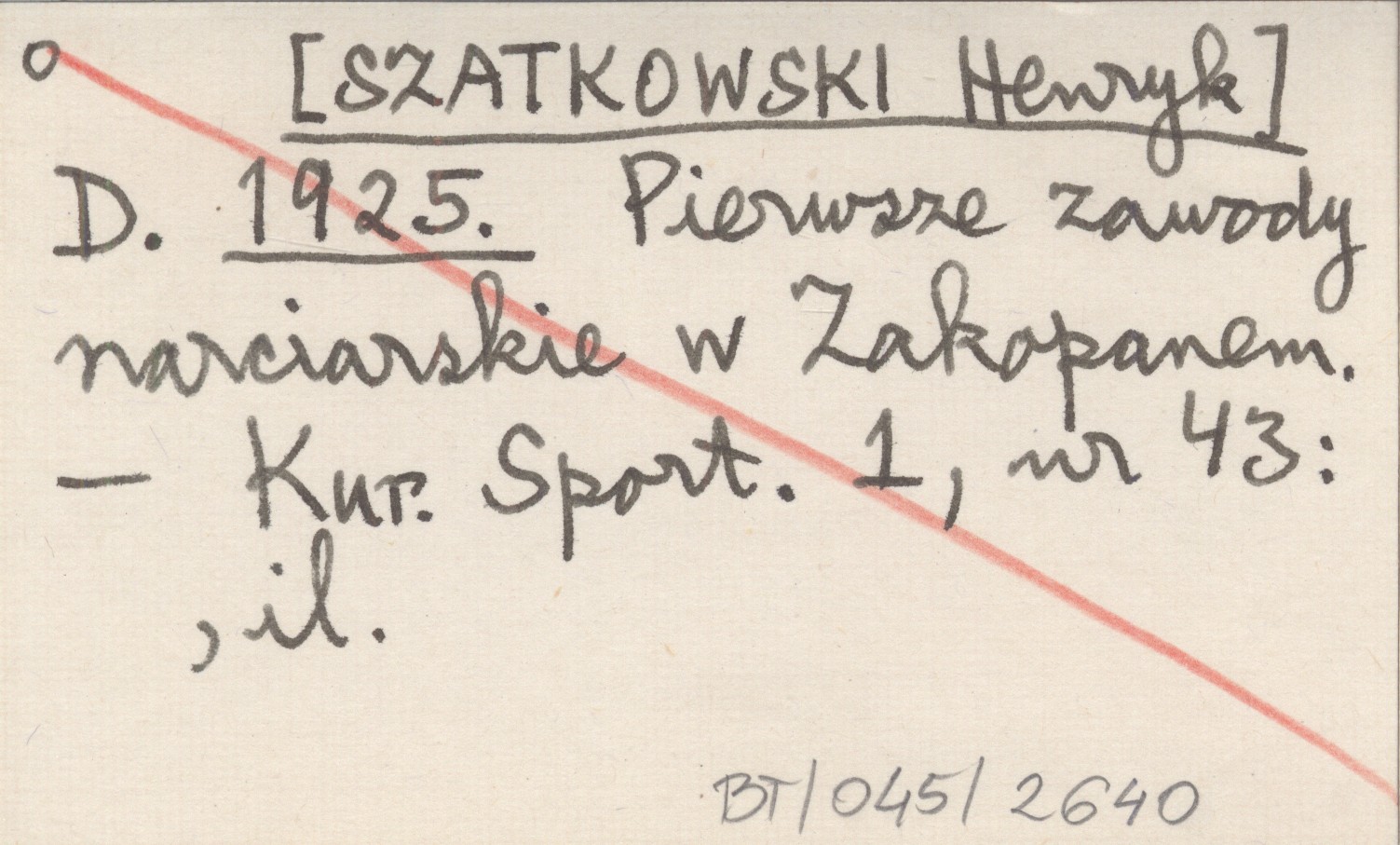 D. [SZATKOWSKI Henryk] 1925 Pierwsze zawody narciarskie w Zakopanem.