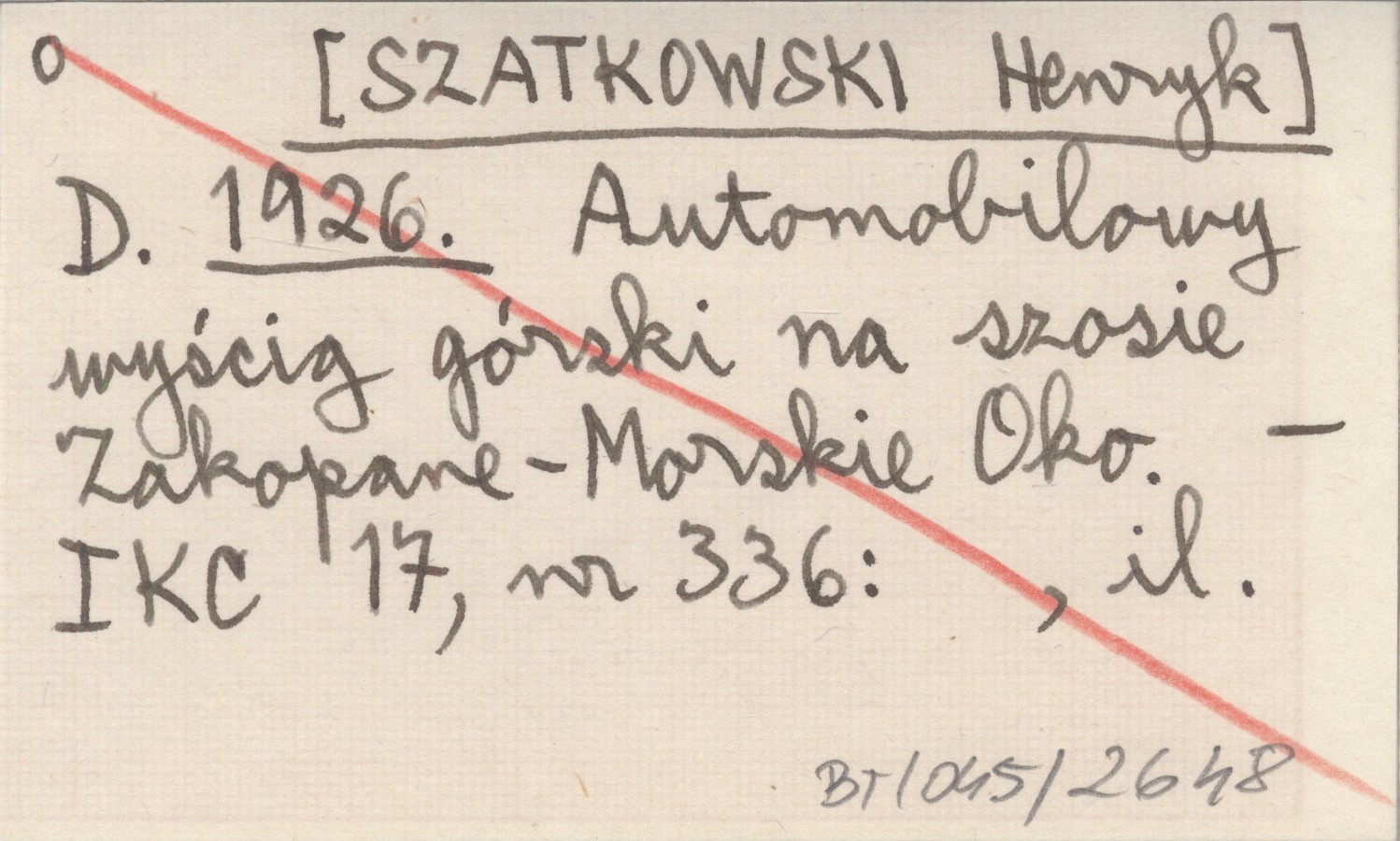 D. [SZATKOWSKI Henryk] 1926 Automobilowy wyścig górski na szosie Zakopane - Morskie Oko.