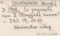 D [SZATKOWSKI Henryk] 1928 Co przyniosła nam II Olimpjada zimowa?