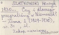 SZATKOWSKI Henryk 1930... Czy i dlaczego przegraliśmy w Niemczech?