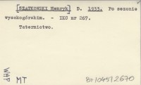 D. [SZATKOWSKI Henryk] 1933 Po sezonie wysokogórskim.