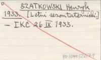 SZATKOWSKI Henryk 1933 [Letni sezon taternicki.]