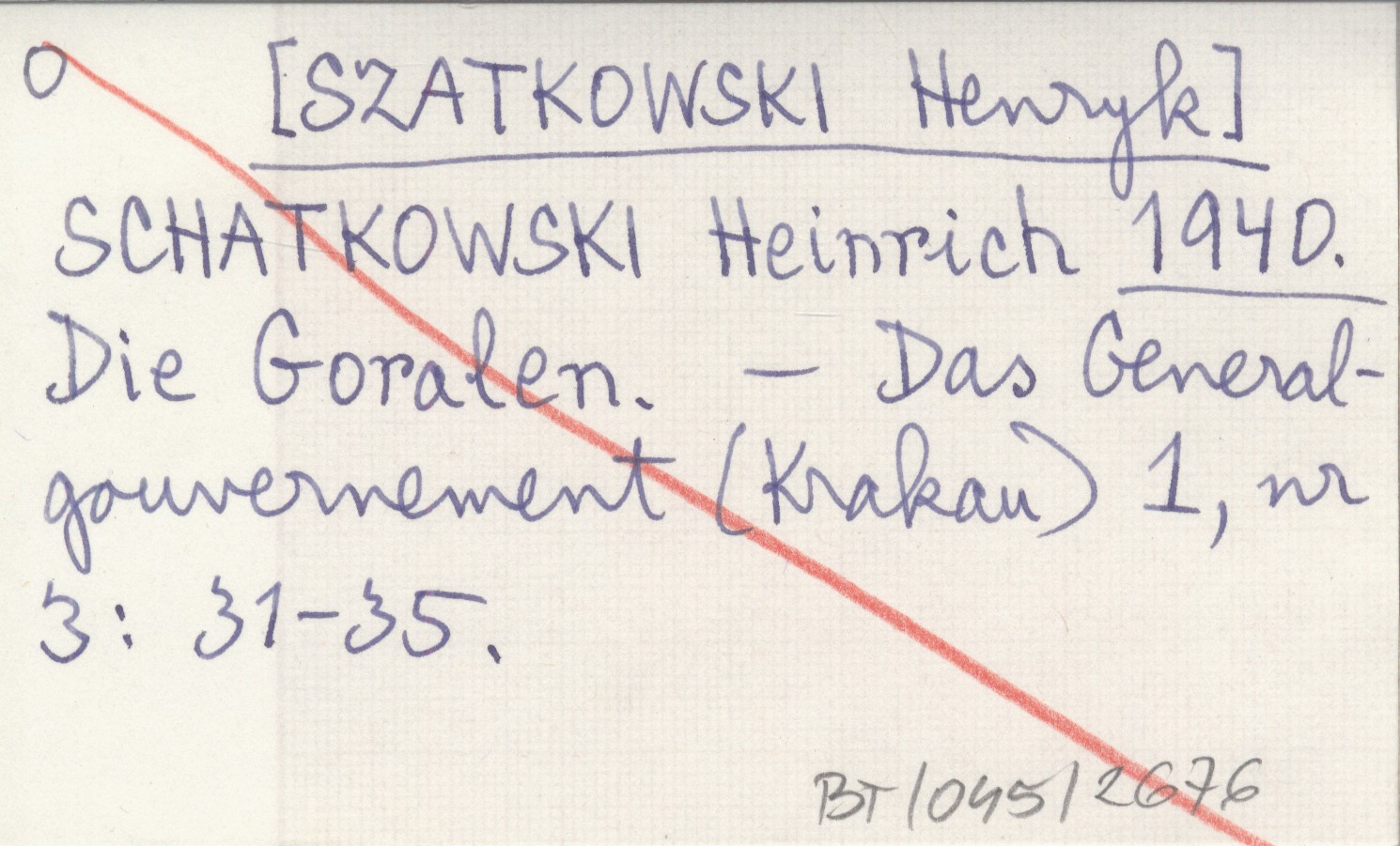 Das Generalgouvernement (Krakau) , 1, nr 3: 31-35.